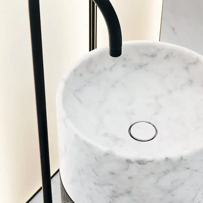 NOORTH milldue edition ROMA Раковина 45х88 см, без отв., напольная, без перелива, с донным клапаном, цоколь Bianco Carrara, цвет: Bianco Carrara/Bianco Carrara