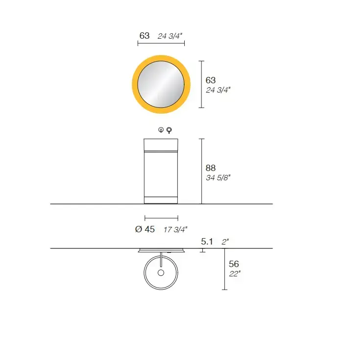 NOORTH milldue edition ROMA Раковина напольная Ø450x880 мм., слив в пол, основ Rovere Nero, корпус Noce Canaletto, вставка Oro, раковина Nero opaco