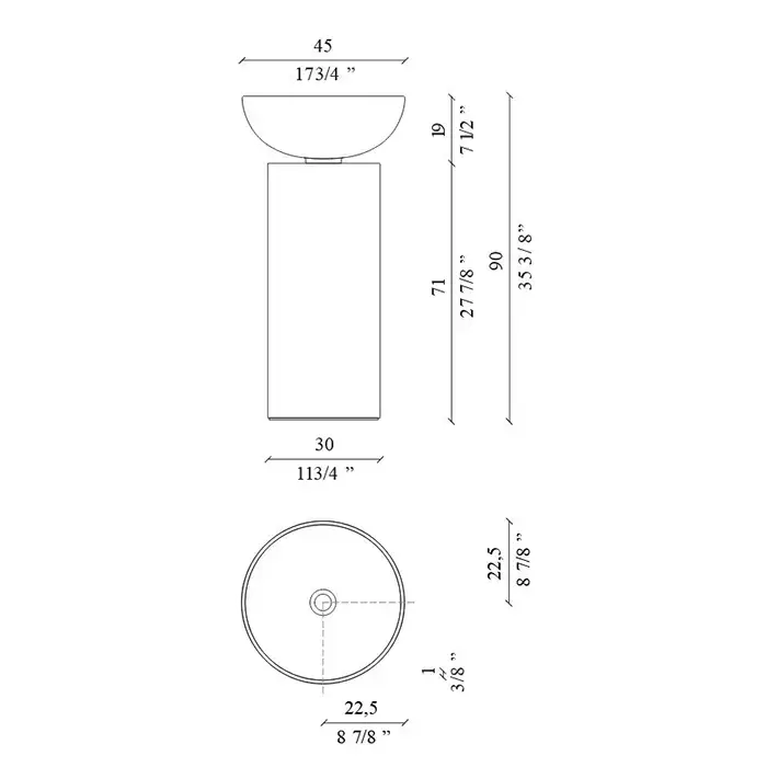 Noorth milldue edition SABA 45 Раковина напольная Ø45x90см, слив в пол, без отв., цвет: Caolino