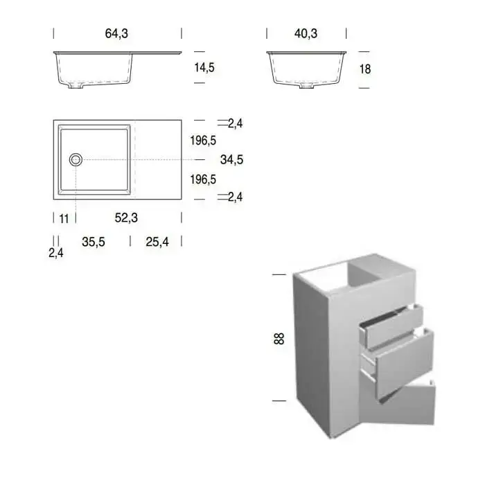 NOORTH milldue edition TOUCH Комплект мебели 64х40х88см, напольный, 3 ящика, слив в пол, раковина Milltek, смеситель H2O, цвет: Argilla матовый