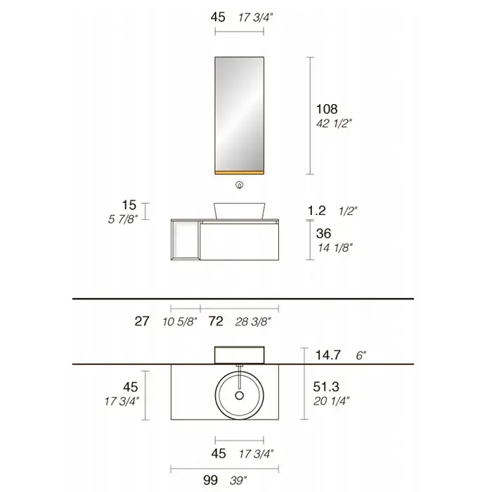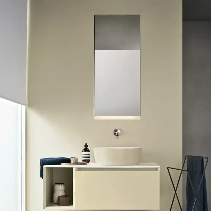 NOORTH milldue edition ZENIT Комплект мебели 99см в матовом лаке, с накладной раковиной и столешницей из CRISTALPLANT, встроенным зеркальным шкафчиком с подсветкой, подвесной, Цвет: giada-30
