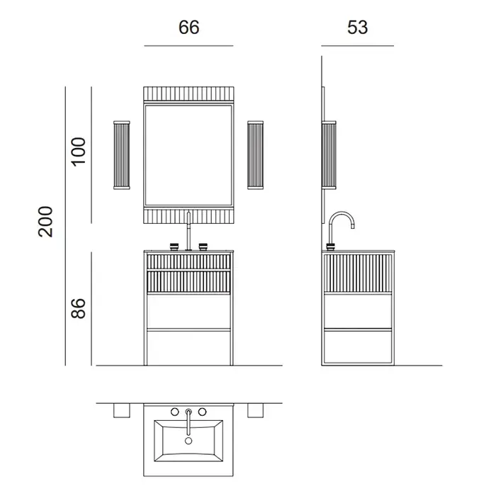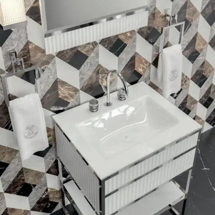 Oasis Academy Композиция №22 Комплект мебели напольный, 66х53хh200см, цвет: glossy Bianco/ribbed decoration/хром