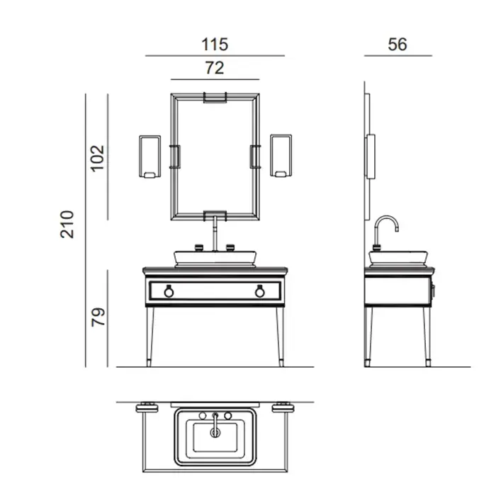 Antonio Lupi Lavandino Раковина 72х44.5х27.5 см, 3 отв., из нержавеющей стали, со смесителем и самотечным донным клапаном, цвет: Stainless steel 316/L