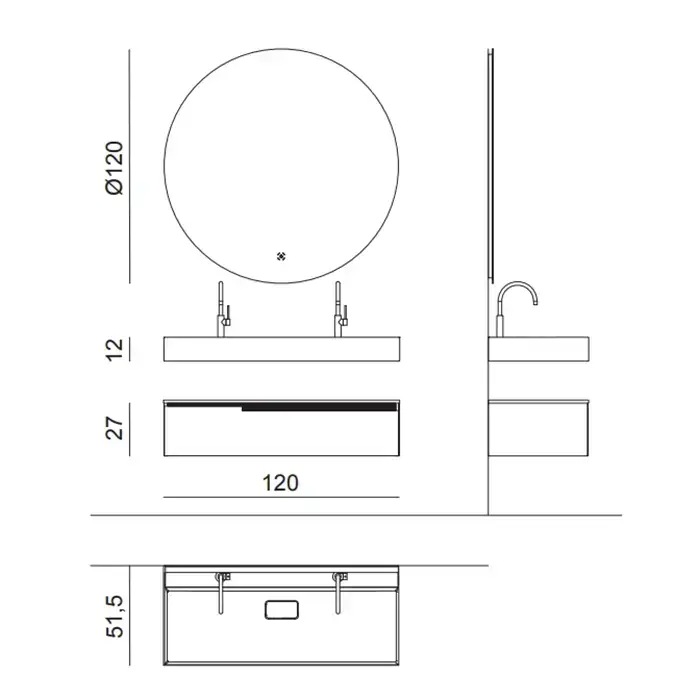 Antonio Lupi Albore Зеркало с блестящей кромкой, Ø120cм., толщиной 5 мм, с белой светодиодной подсветкой, на раме