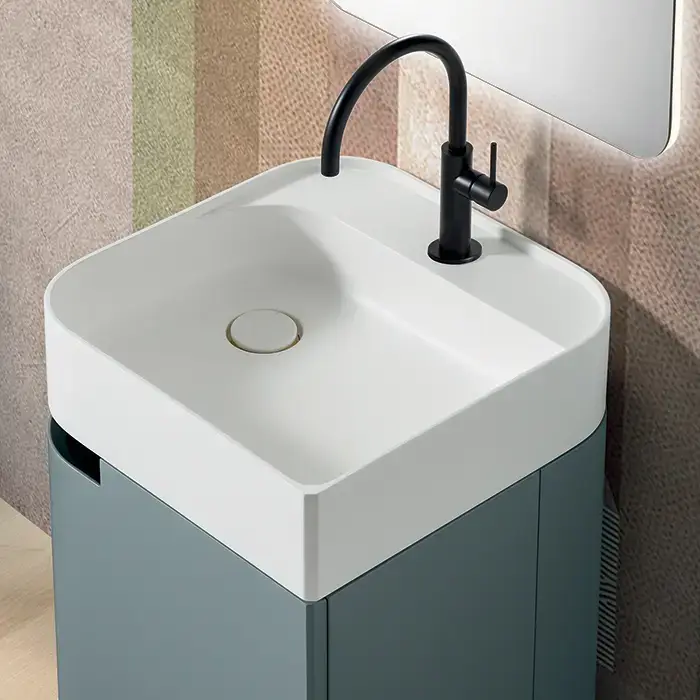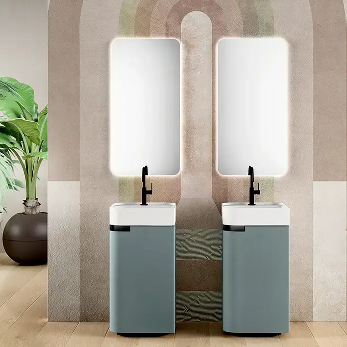Oasis Profilo Комплект мебели, тумба с 1 дверцей, и раковиной на 1 отв., зеркало 50х100см., с светодиодной подсветкой с сенсорным выключателем и диммированием, цвет: Mint/белый
