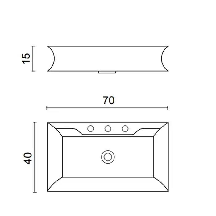 Oasis Раковина накладная, 70х40см., с 3 отв., цвет: белый