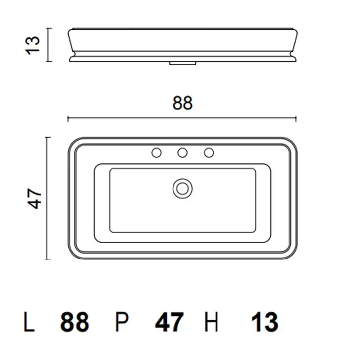 Oasis Раковина накладная, 88х47см., с 3 отв., цвет: белый