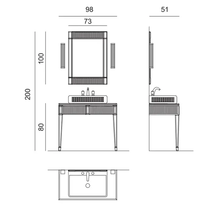 Oasis Rialto Комплект мебели напольный, №1, L98xP51x H:200см, цвет: ribbed mirror/хром