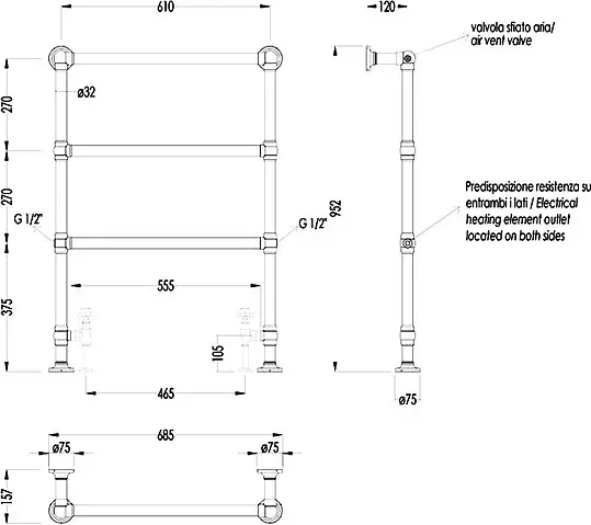 Devon&Devon Baccus 4 Полотенцесушитель электрический, цвет хром PRB4CRELSX/CR