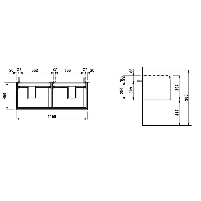 Намеченные отверстия под смеситель