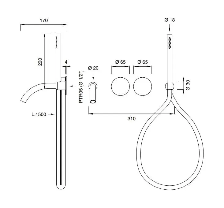 Смеситель для ванны CEA GIOTTO PLUS GIO96KDS+BOX40 цвет-BLACK DIAMOND SATIN