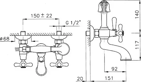 Nicolazzi Nuova Brenta Смеситель для раковины с 2мя ручками, пов. излив 19 см, цвет хром 2538CR