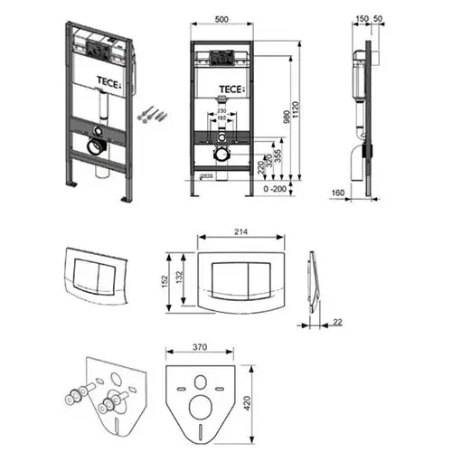 Tece Base Инсталляция для унитаза 4 в 1 с кнопкой смыва, креплением и шумоиз., цвет: белый матовый K440417