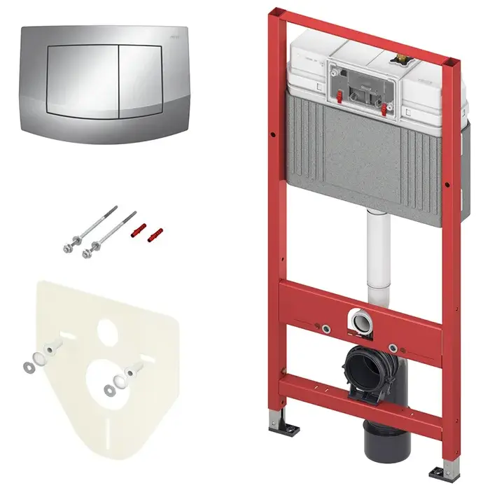 Tece Base Инсталляция для унитаза 4 в 1 с кнопкой смыва, креплением и шумоиз., цвет: хром глянцевый 9400405