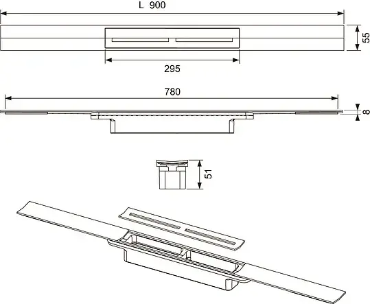 Tece Drainprofile Профиль для душа из нержавеющей стали 90 см, цвет: нерж. сталь, глянцевая 670910