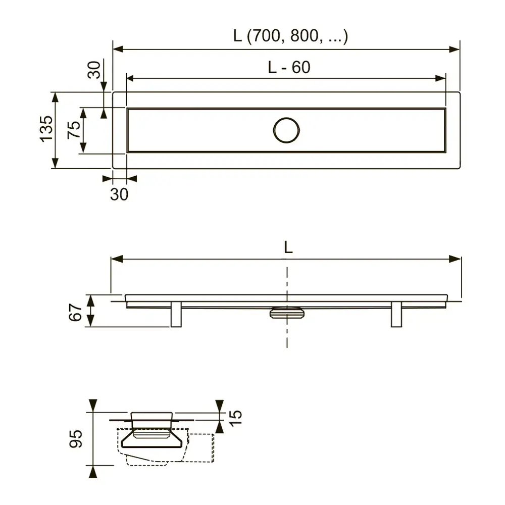 Tece Linus Дренажный канал из нержавеющей стали: основа для плитки tile, решетка steel 70 см 15103079