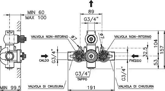Nicolazzi Termostatico Внешняя часть встр. смесителя, 3/4” с запорным вентилем, цвет хром 4909CR27