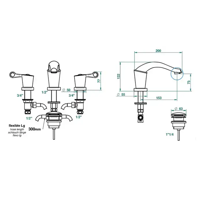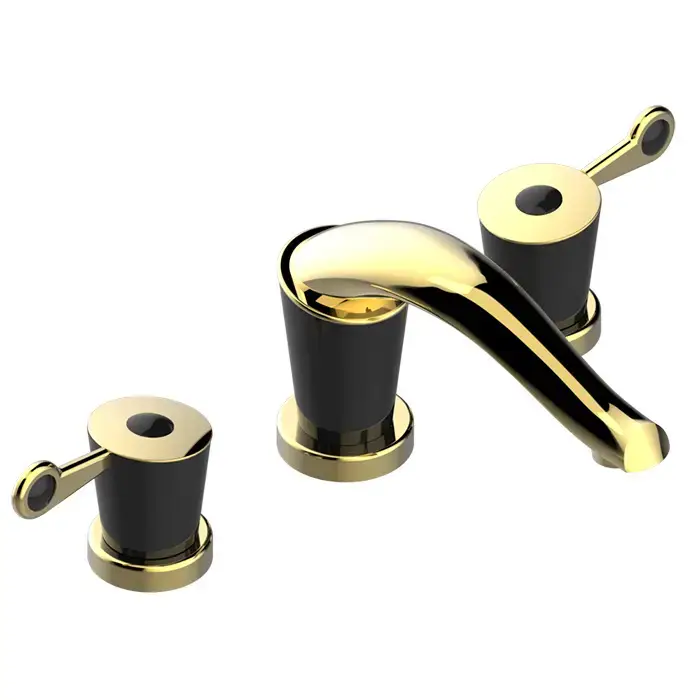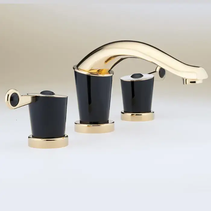 THG Bagatelle pierre noire Смеситель для раковины на 3 отверстия, с донным клапаном, ручки черные, цвет: полированное золото