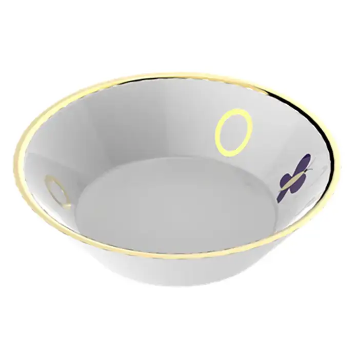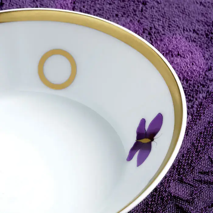 THG CAPUCINE MAUVE DECOR OR Поднос керамический 220х198 мм., настольный, large size, декор золото/лиловый, цвет: белый