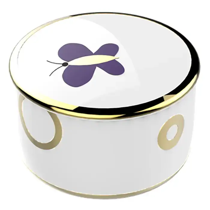 THG CAPUCINE MAUVE DECOR OR Коробка для таблеток керамическая, круглая ø55 мм., настольная, декор золото/лиловый, цвет: белый