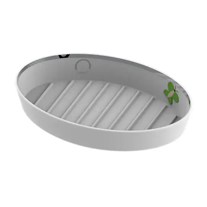 THG CAPUCINE VERT DECOR PLATINE Мыльница керамическая, настольная, декор платина/зеленый, цвет: белый