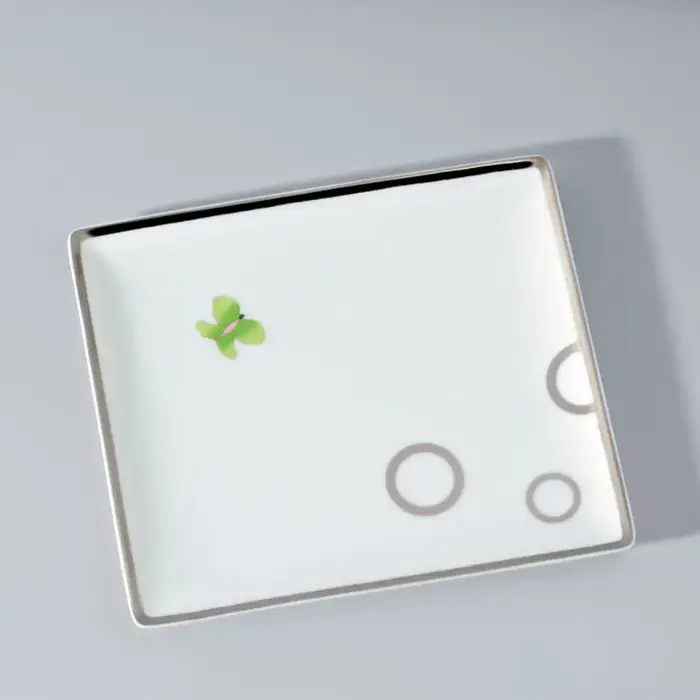THG CAPUCINE VERT DECOR PLATINE Поднос керамический 171х154 мм., настольный, middle size, декор платина/зеленый, цвет: белый
