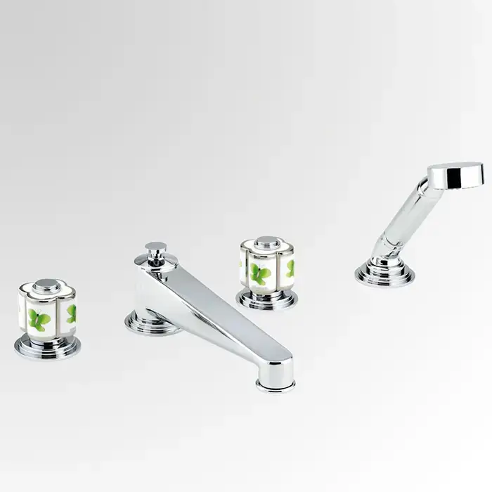 THG CAPUCINE VERT DECOR PLATINE Смеситель на борт ванны, на 4 отверстия, с ручным душем, декор платина/зеленый, цвет: хром