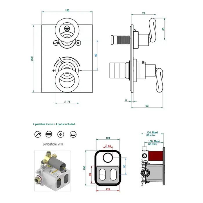 THG Collection O Смеситель для душа, встраиваемый, термостатический, с переключателем на 3 потока, цвет: Soft matt gold