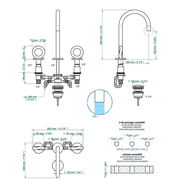 THG Collection O Смеситель для раковины, 3 отв., с донным клапаном, цвет: Soft gold