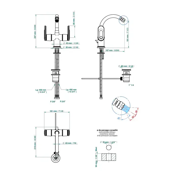 THG CORVAIR A MANETTES FIOR DI BOSCO Смеситель для раковины на 3 отверстия, с донным клапаном, цвет: хром