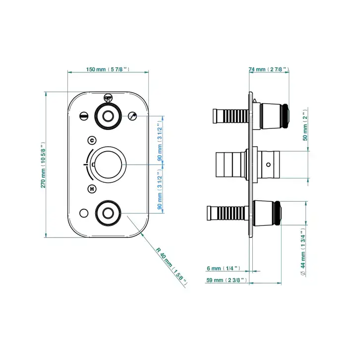 THG CORVAIR FIOR DI BOSCO Смеситель для раковины настенный, c 2 вентилями, внешняя часть, цвет: хром