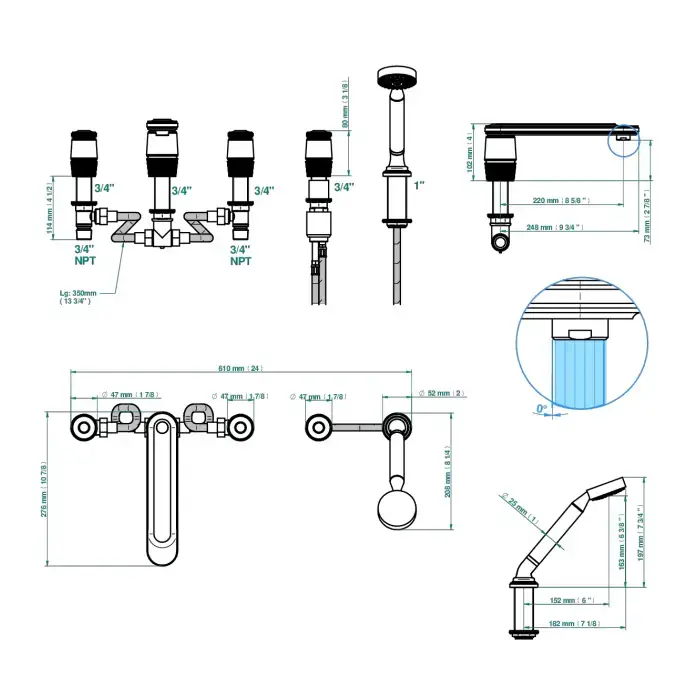 THG CORVAIR FIOR DI BOSCO Смеситель для раковины настенный, c 2 вентилями, внешняя часть, цвет: хром