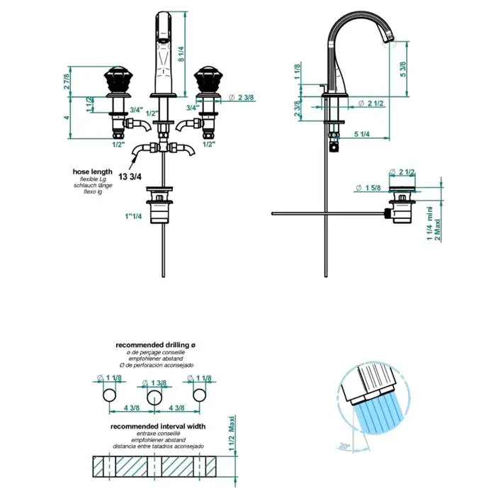 THG Dahlia Смеситель для раковины, 3 отв., цвет: хром