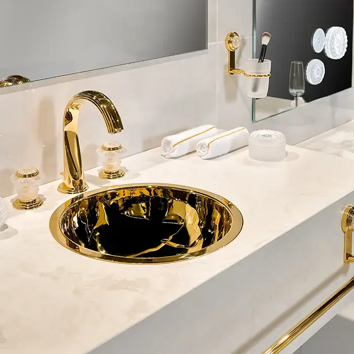 THG Dahlia Смеситель для раковины, 3 отв., цвет: золото