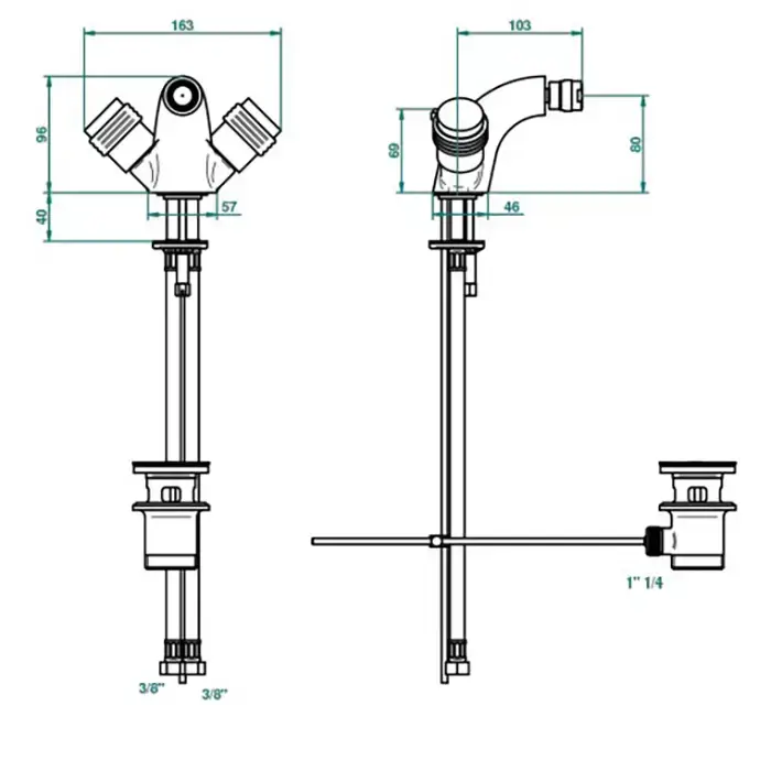 THG Diplomate grooved rings Смеситель для биде на 1 отверстие, с донным клапаном, цвет: хром/золото