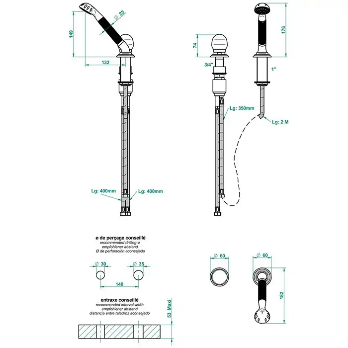 THG Dragon Jade Ручной душ на борт ванны, 2 отв., цвет: золото/хрусталь