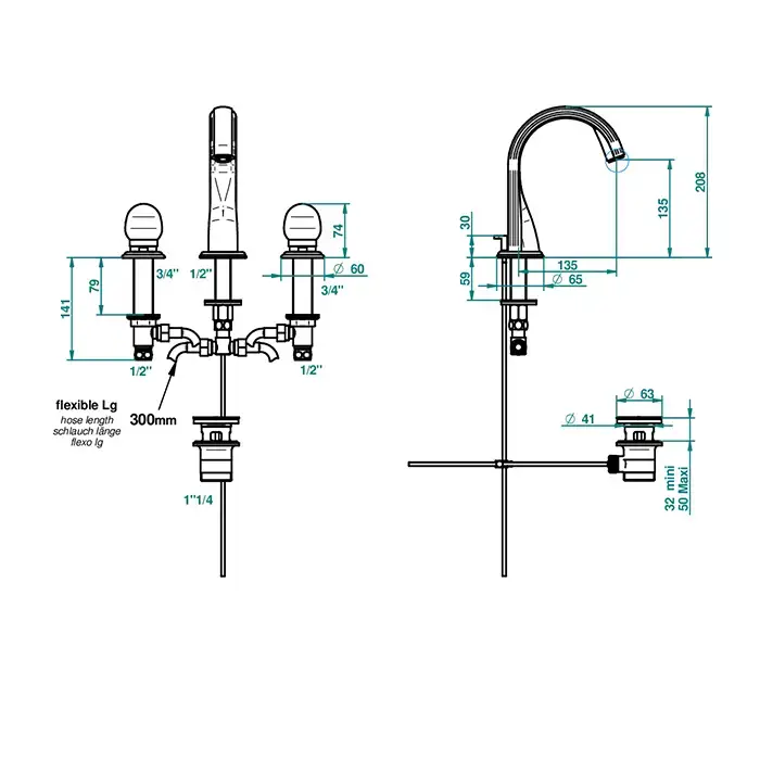 THG Dragon Moon Смеситель для раковины, 3 отв., цвет: хром/хрусталь