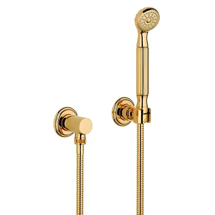THG Dragon Sun Душевой комплект с ручным душем, шлангом 1500 мм., подводом воды и держателем, цвет: полированное золото