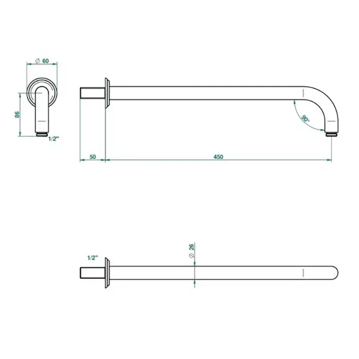 THG Flore Держатель верхнего душа 450 мм., настенный монтаж, цвет: хром