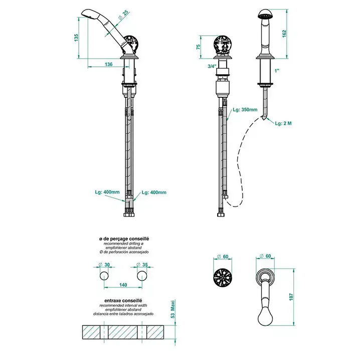 THG Flore Ручной душ на борт ванны, 2 отв., цвет: хром/хрусталь