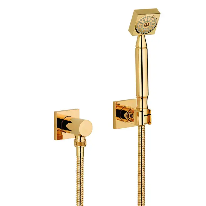 THG Ginkgo Душевой комплект с ручным душем, шланг 1500 мм., держатель и подвод воды, цвет: полированное золото