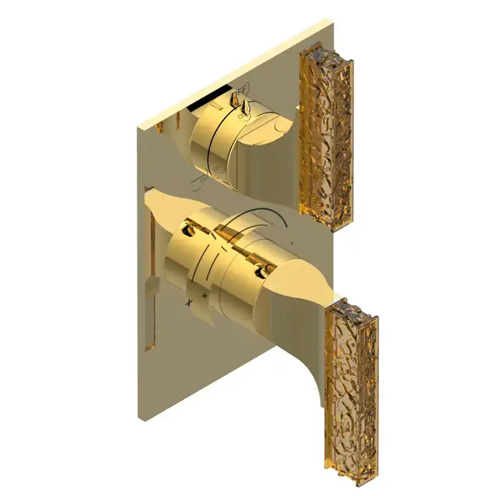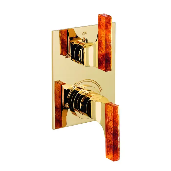 THG Ginkgo Смеситель для душа, термостатический, с переключателем на 2 потока, цвет: золото/хрусталь