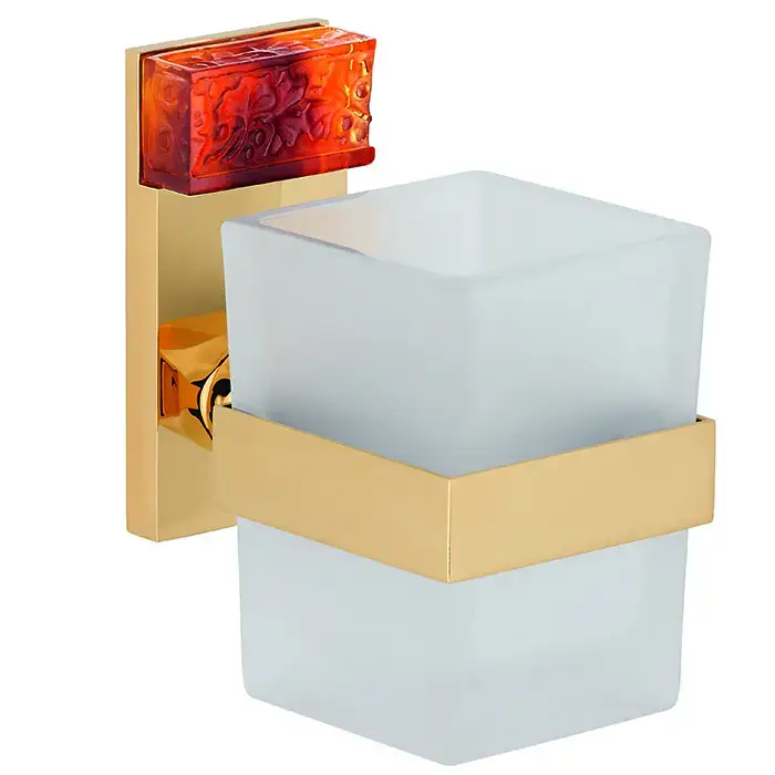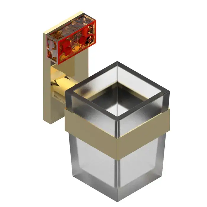 THG Ginkgo Держатель для туалетной бумаги с крышкой, подвесной, цвет: золото/хрусталь