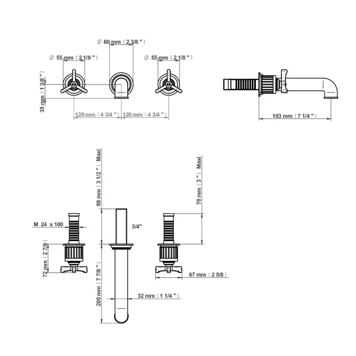 THG Hamptons Смеситель для раковины, настенный, цвет: хром