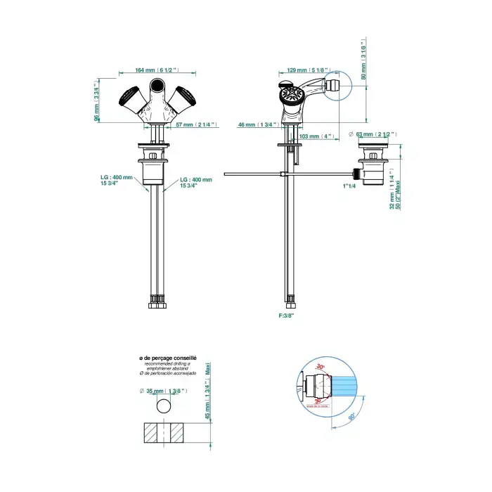 THG Hirondelles Platinum Stamped Смеситель для биде, 1 отв., цвет: хром
