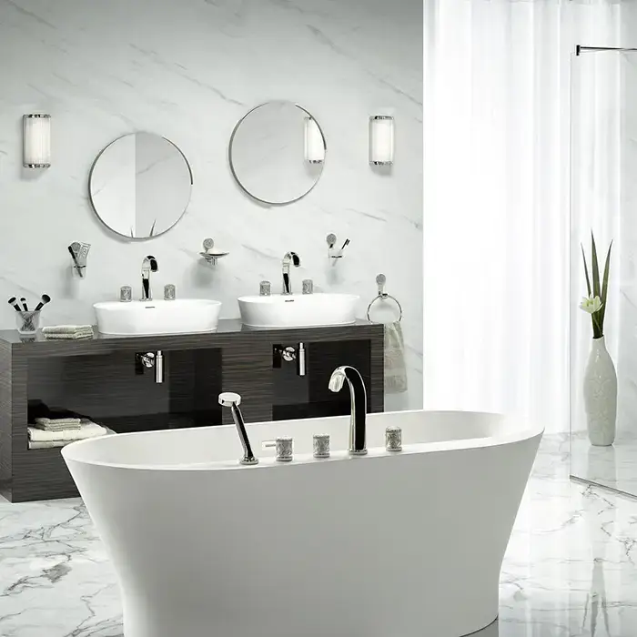 THG Hirondelles Platinum Stamped Смеситель для раковины, 3 отв., цвет: Polished nickel