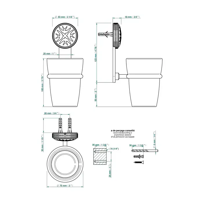 THG Hirondelles Platinum Stamped Стакан подвесной, стеклянный, цвет: Polished nickel