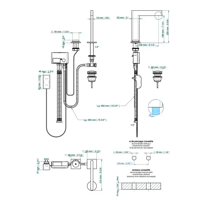 THG ICON-X CARBONE GOLD A MANETTES Смеситель для раковины, 2 отв., электронный, с донным клапаном, цвет: хром