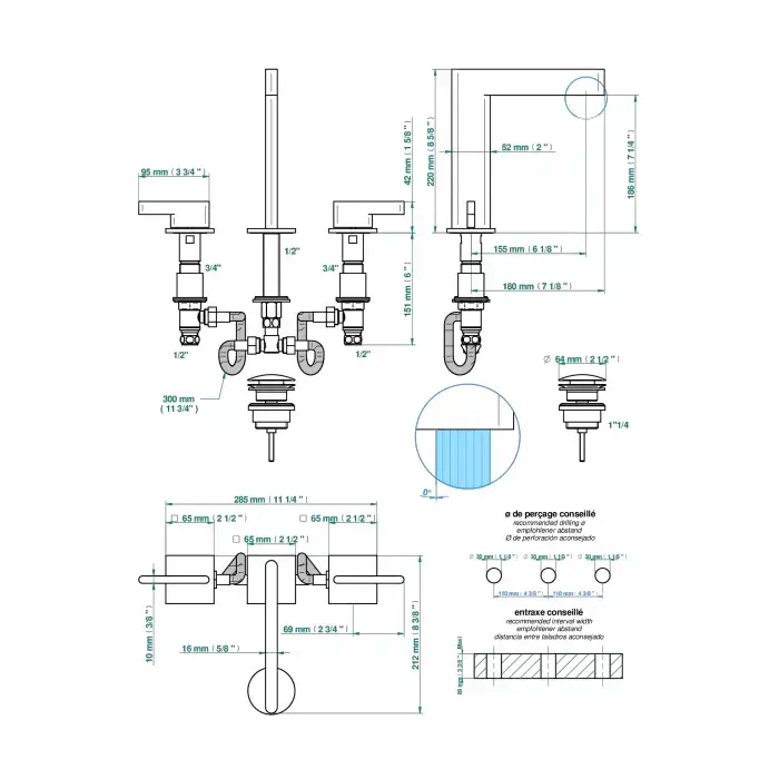 THG ICON-X METAL À MANETTES Смеситель для раковины, 3 отв., с донным клапаном, цвет: хром