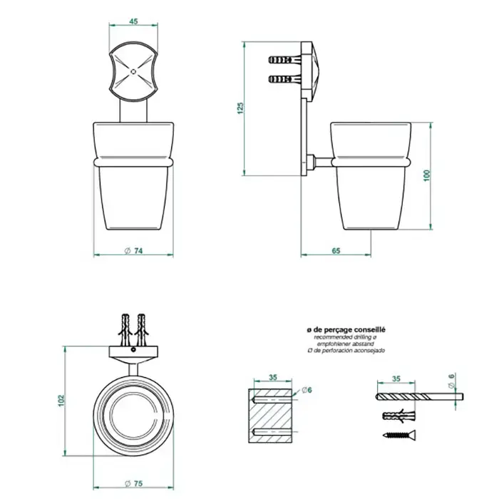 THG Infini white porcelain Стакан стеклянный, подвесной, цвет: хром